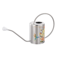 Estilo nórdico 1.5L Jardín interior Regadera de acero inoxidable Diseño de cuello largo con impresión 100% Arte de metal hecho a mano