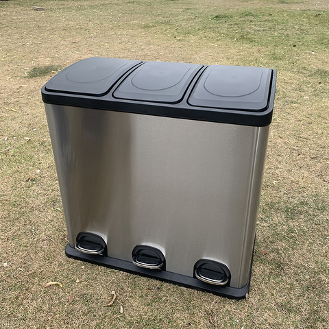 Cubo de basura de acero inoxidable con logotipo personalizado, clasificación 2/3, cubo de basura con Pedal de cocina para interior/exterior, respetuoso con el medio ambiente