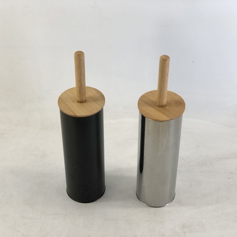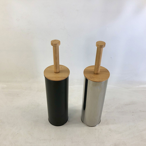 Portaescobillas de limpieza de inodoro redondo de madera de bambú con material plástico de nuevo diseño de acero inoxidable